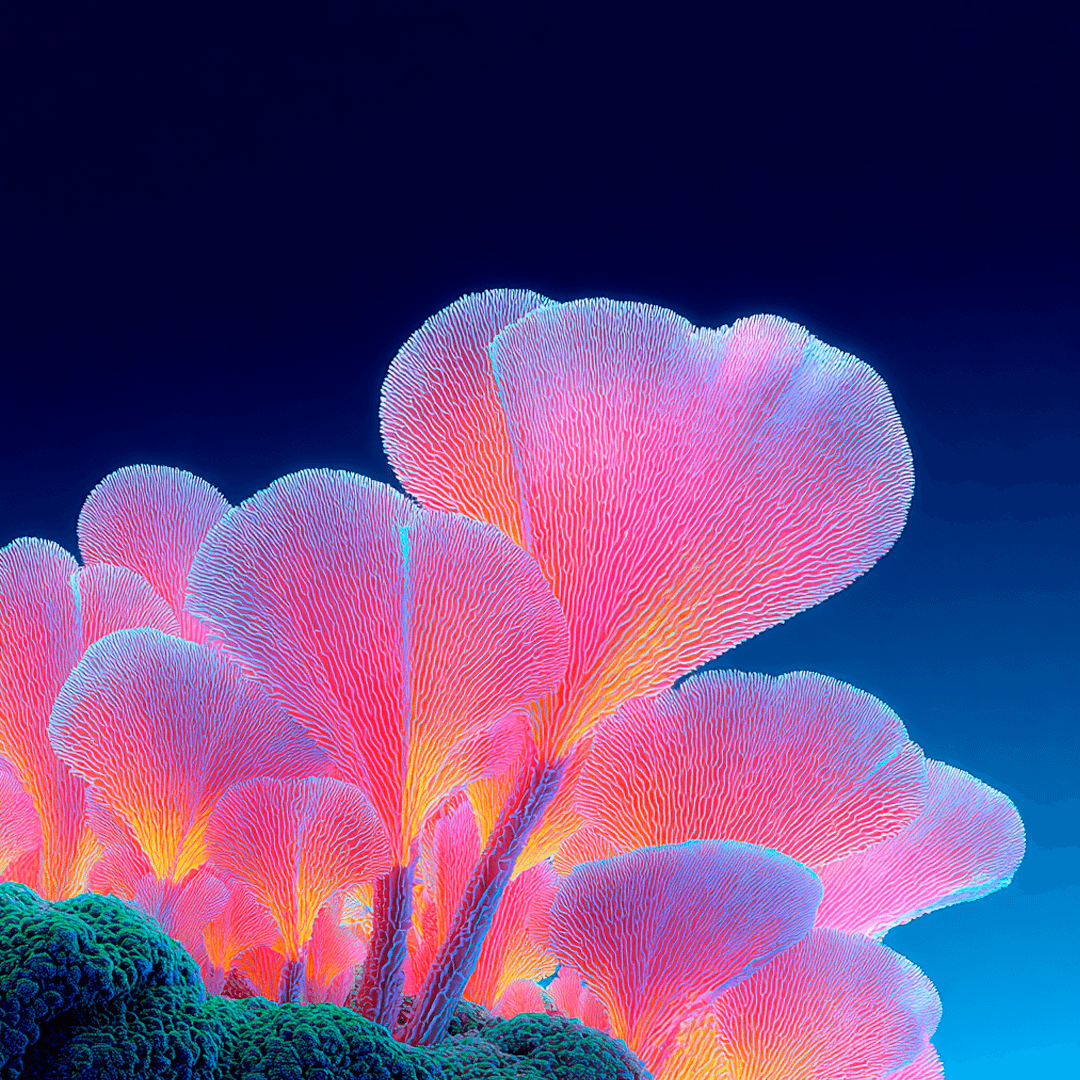 A vibrant exploration of organic forms and translucent textures, using AI to reinterpret nature through luminous color harmonies, fluid structures, and softly surreal environmental moods.